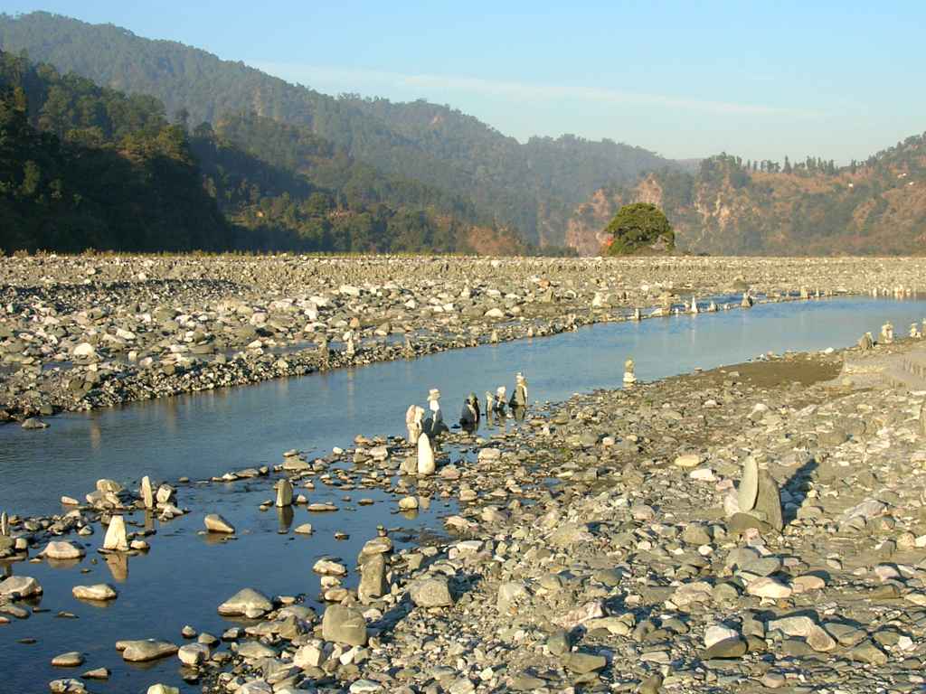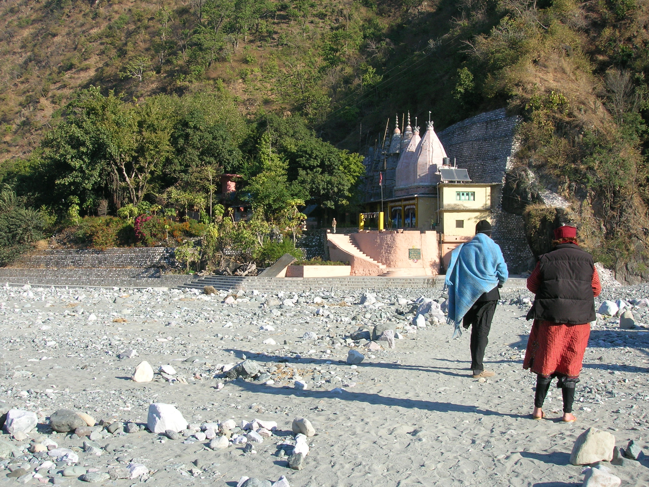 L’ultimo pezzo di strada per raggiungere l’Ashram lo abbiamo percorso a piedi, con gli zaini sulle spalle, camminando lungo il letto del fiume. La presenza del Geshe, al mio fianco, mi faceva sentire protetta, ma allo stesso tempo dentro di me pensavo che non ce l’avrei fatta! Il paesaggio, il fiume, le case, e i templi colorati e decorati con le immagini delle divinità induiste…tutto era meraviglioso, ma al tempo stesso così lontano e diverso da ciò che per me era familiare. Non nascondo che mi è venuto quasi un attacco di panico!!!