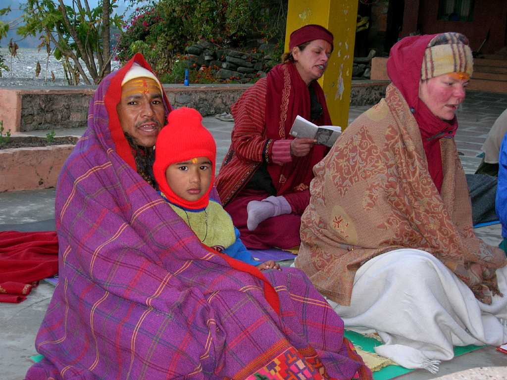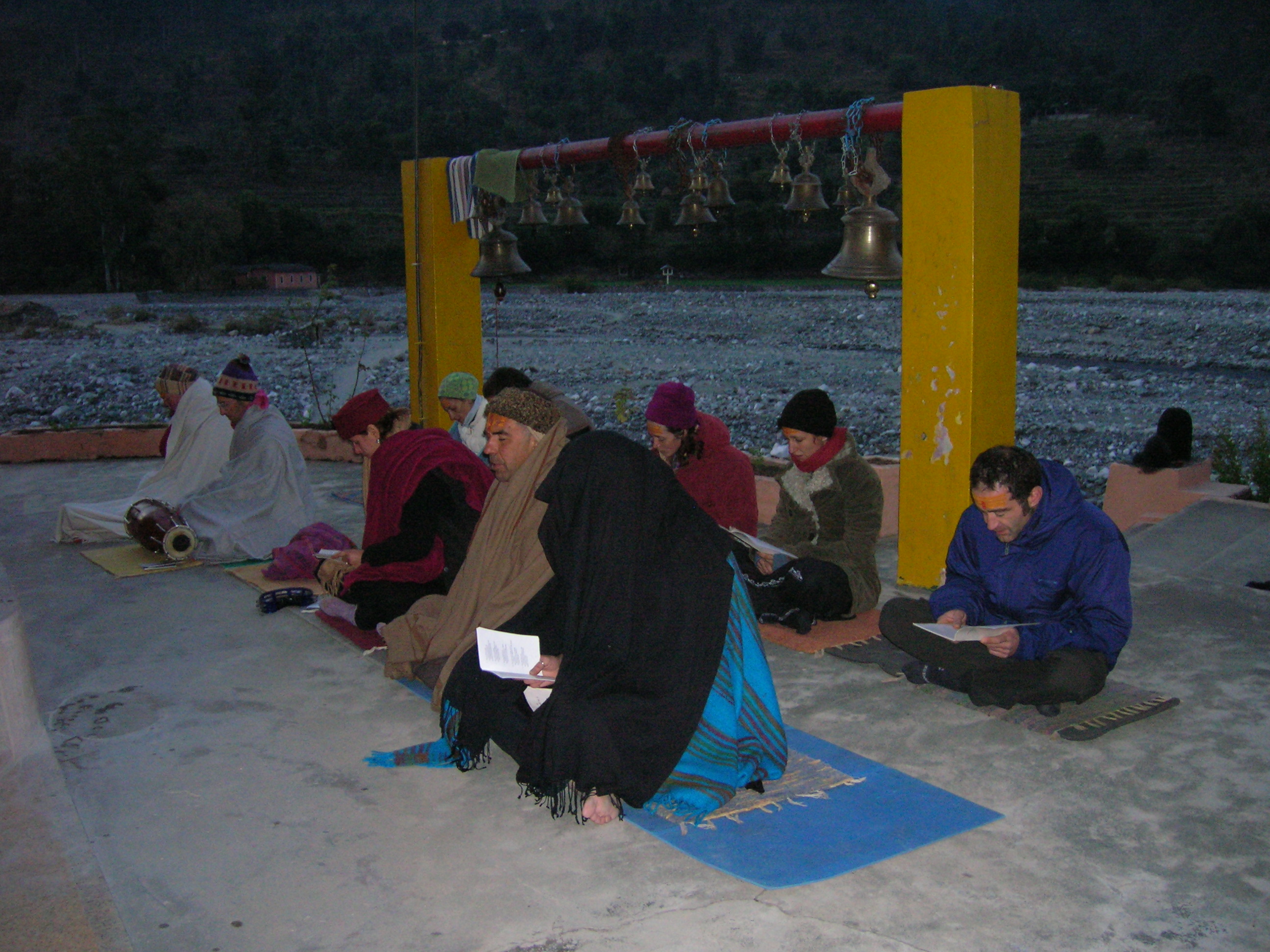 Dal giorno successivo al nostro arrivo, abbiamo cominciato a seguire le pratiche giornaliere dell’Ashram: sveglia alle tre e mezzo di mattina, bagno nel fiume gelido, e, a seguire, meditazione davanti al fuoco. Cerimonia della chandan, in cui la nostra fronte veniva dipinta con della pasta di sandalo e curcuma per purificare la mente; cerimonia dell’Aarati… e poi finalmente colazione!!!